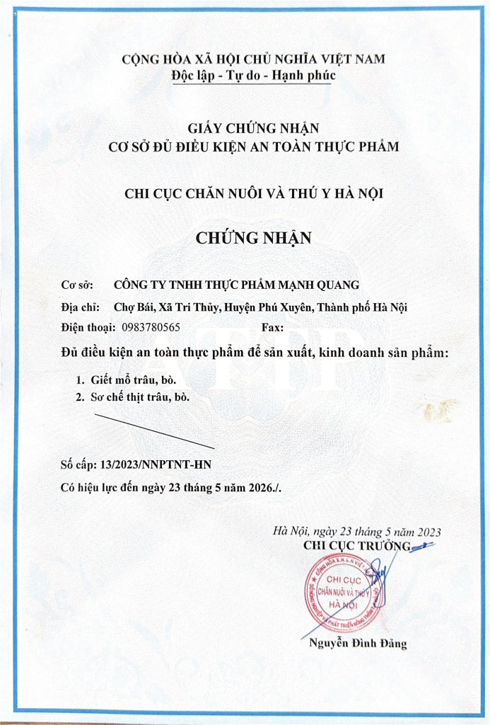 Thịt bò tươi Mạnh Quang — Giết mổ & sơ chế đạt chuẩn,...