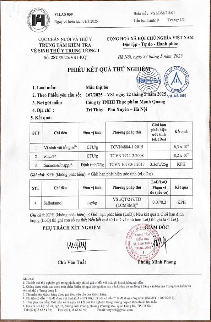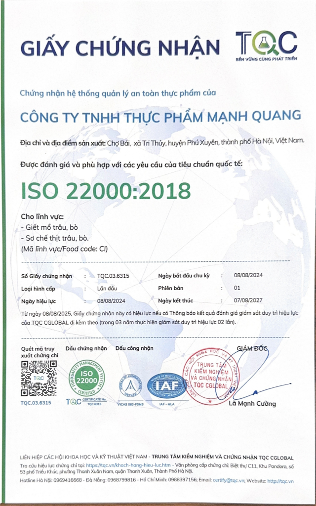 Công ty TNHH Thực phẩm Mạnh Quang – Thịt bò tươi Mạnh Quang